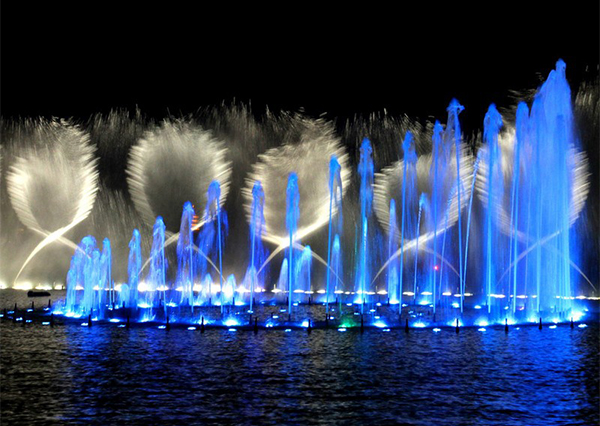 西湖音樂噴泉長約126米,弧形部分寬約2米,整個音樂噴泉主要有七···